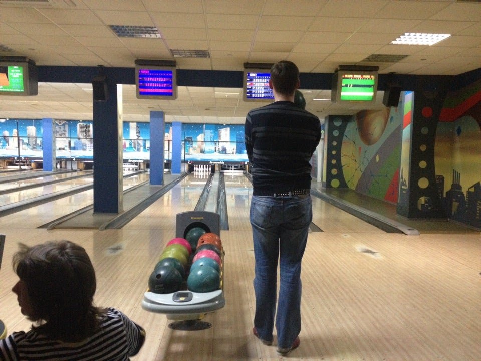 Живем в другом городе, где боулинг закрылся уже 7 лет назад, так что для нас это была настоящая радость снова покататься шары. Компания у нас собралась примерно человек 16, взяли 3 дорожки и провели там более 2 часов. Оборудование работало исправно, персонал нормально обслуживал: все рассказывали, на вопросы отвечали, объясняли правила игры и расценки. Из еды брали в основном пиво с закусками. Приехали сюда с рабочими коллегами в командировку и решили впервые заглянуть в этот клуб.